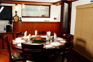 This room has the traditional Ayurveda bed made out of solid wood for the comfort of the guests. For the first time the masseur on board provides different kinds of treatments. This room comprises of a state of the art Steam Chamber which gives customers a rejuvenating experience of Herbal Steam Bath. The tariff menu of the treatment is avaiialble for guests on the boat.